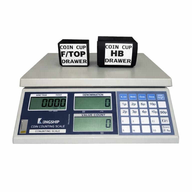 The Kingship CS is an electronic coin counting scales designed for rapid cash handling and retail balancing. Unlike mechanical sorters, these use weight-based technology to provide both the total value and quantity of coins